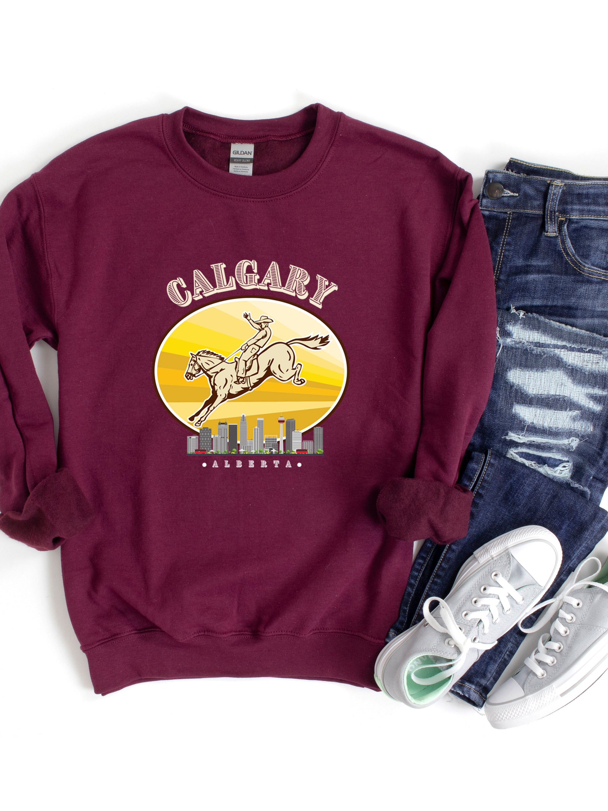 Calgary Cityscape - Crewneck Rlaxed Fit Sweatshirt Garnet Red