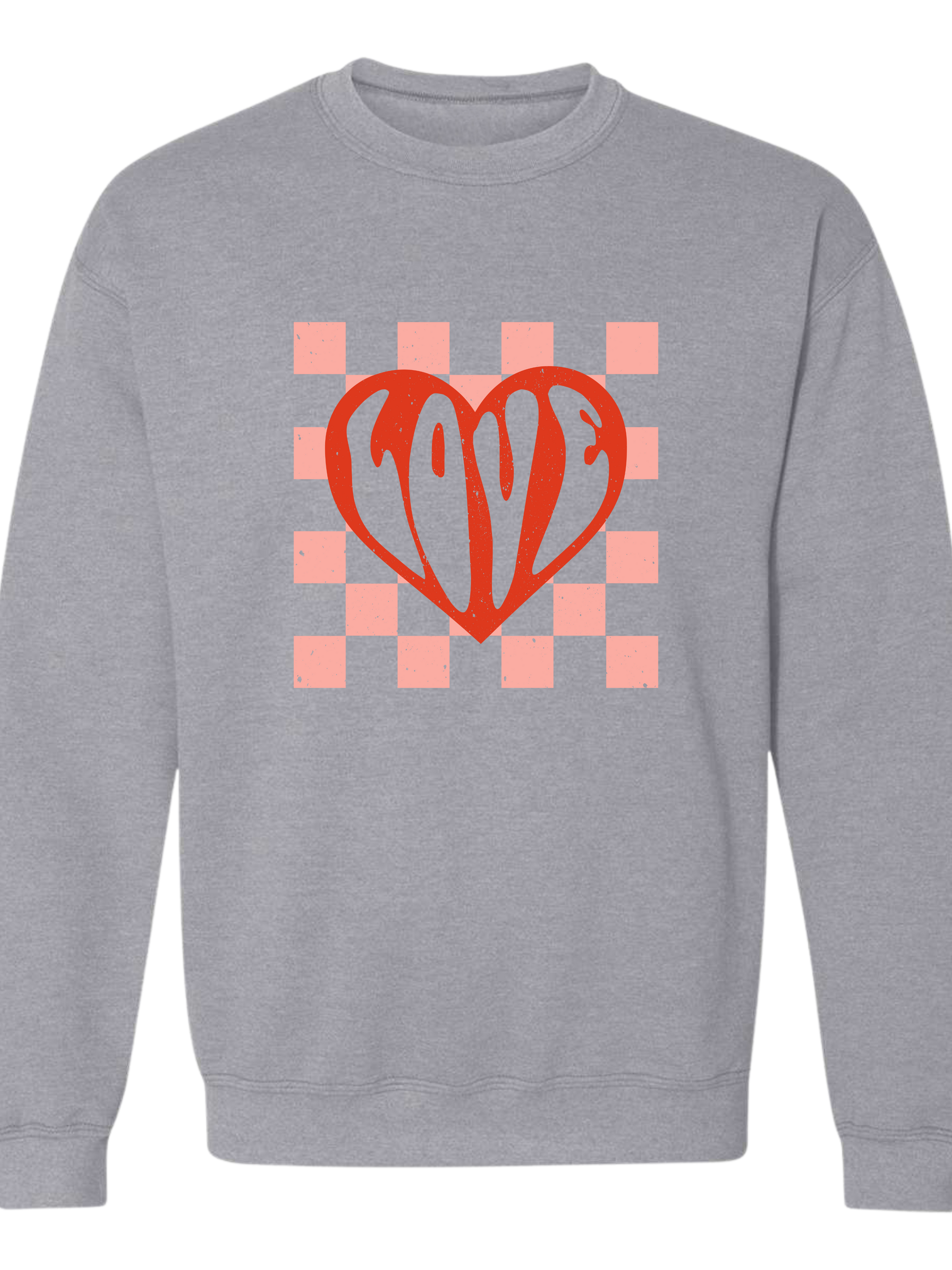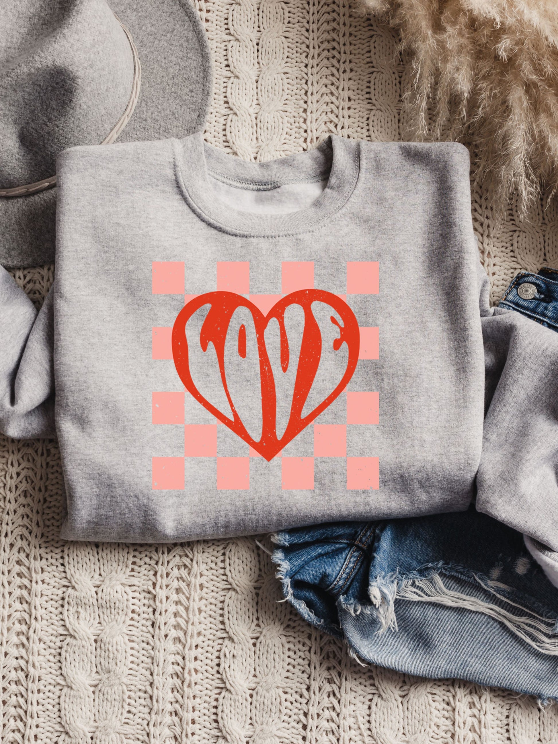 Checkered Love Heart - Crewneck Relaxed Fit Sweatshirt