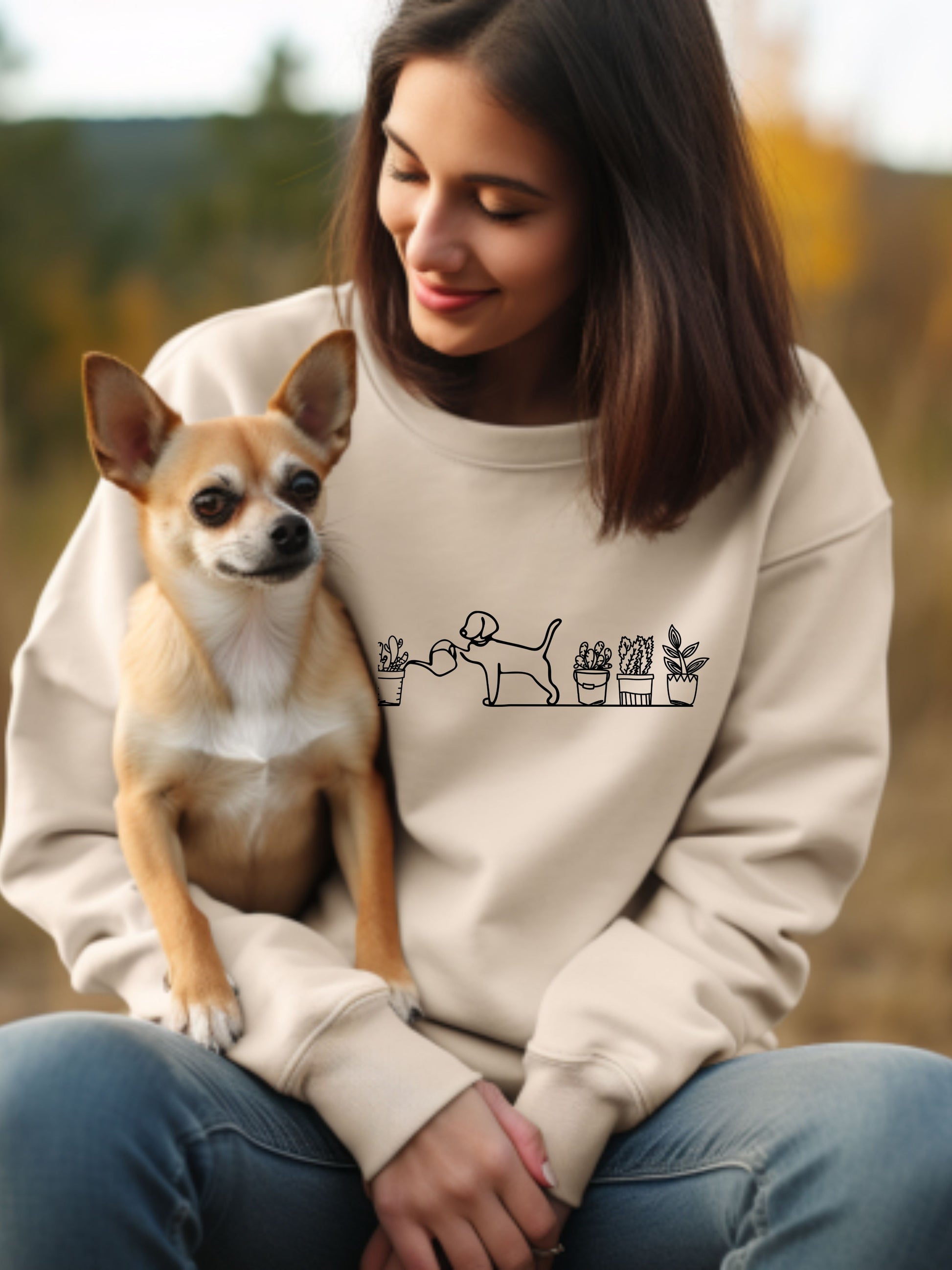 Dog Watering Plants - Crewneck Relaxed Fit Sweatshirt Sand