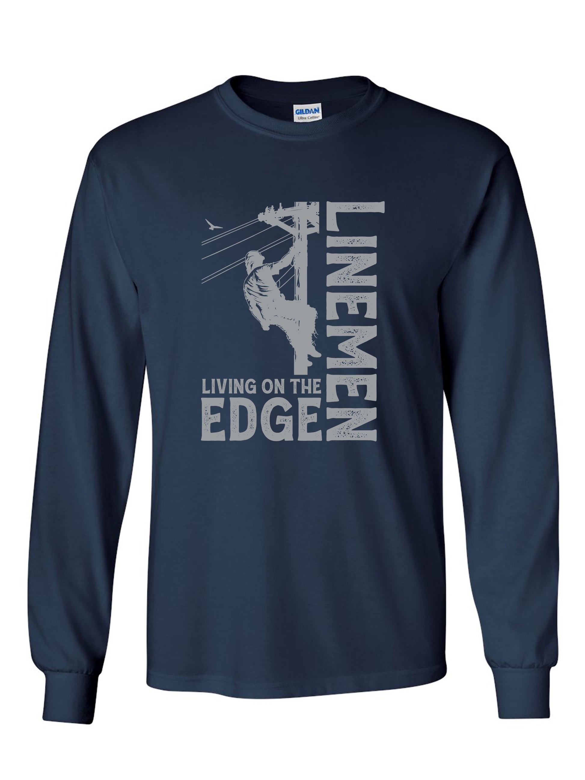 Power Lineman Shirt - Living on the Edge - Ultra Cotton Relaxed Fit Long Sleeve T-shirt - Navy