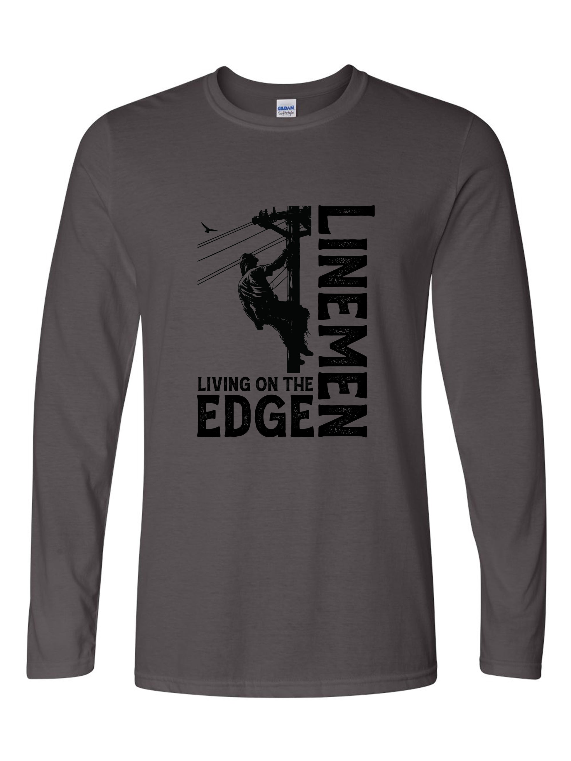 Power Lineman Shirt - Living on the Edge - Softstyle Long Sleeve T-shirt - Charcoal
