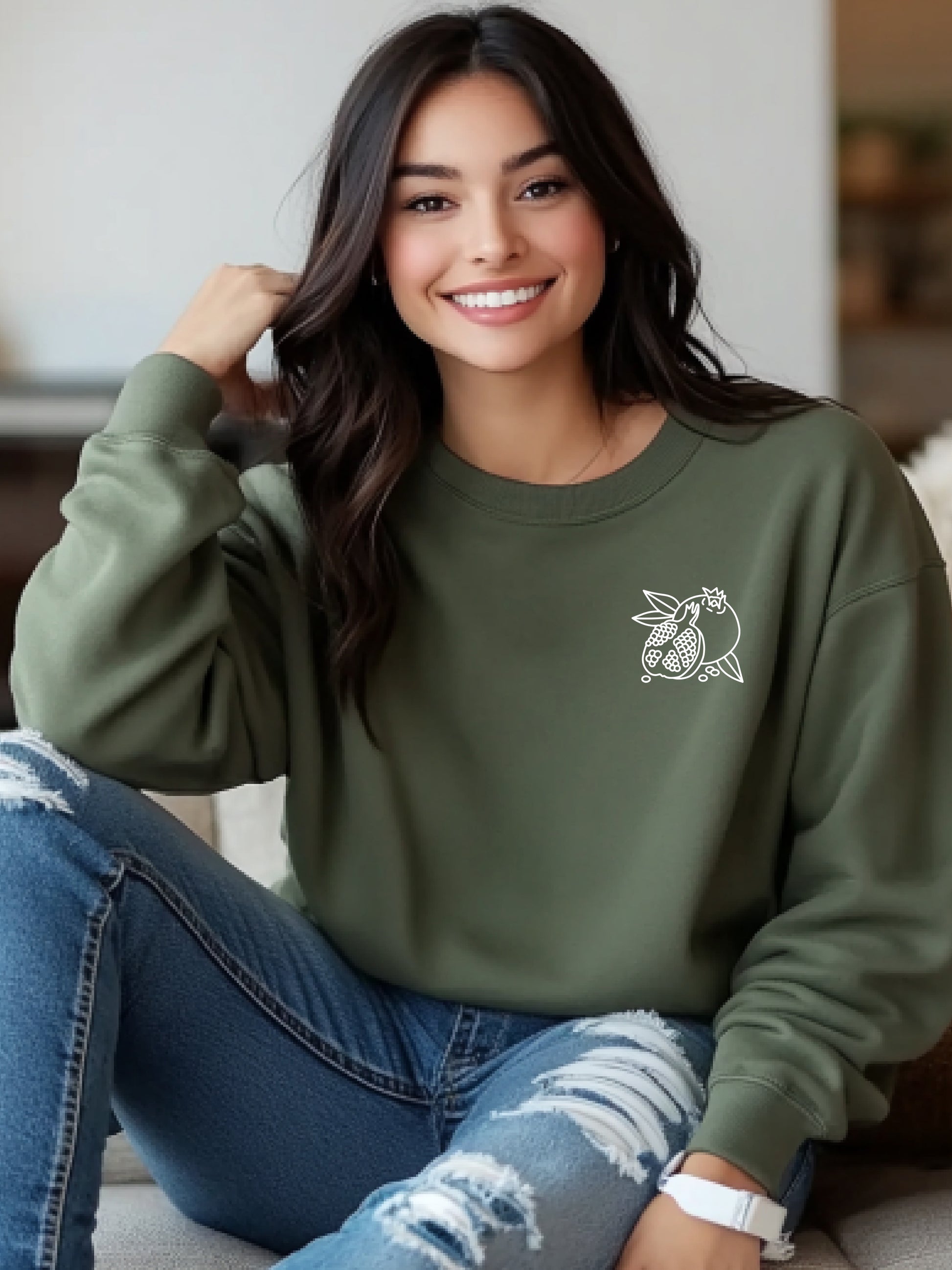 Pomegranate Queen - Unisex Crewneck Relaxed Fit Sweatshirt Sage Green