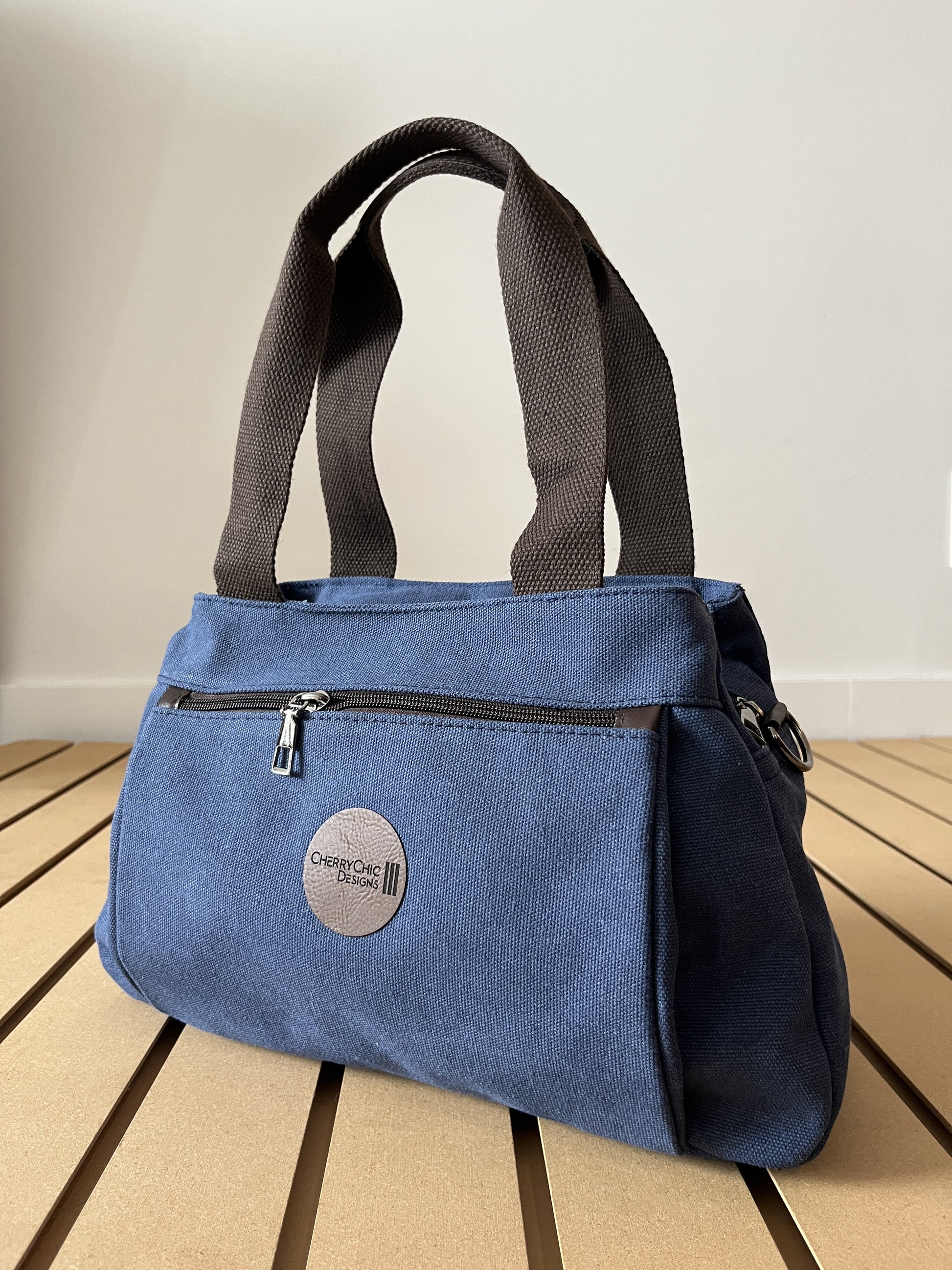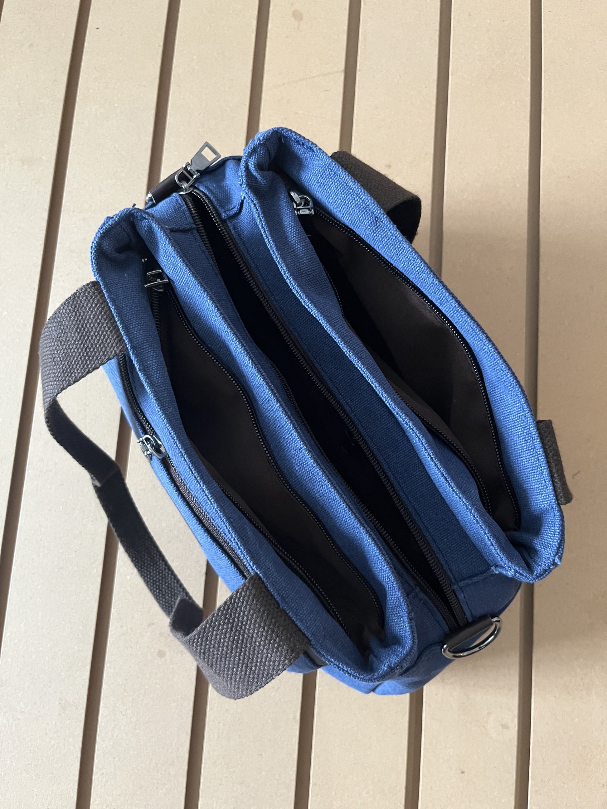 Vibe Sling Mini-Maximizer Canvas Crossbody Purse – Dark Blue