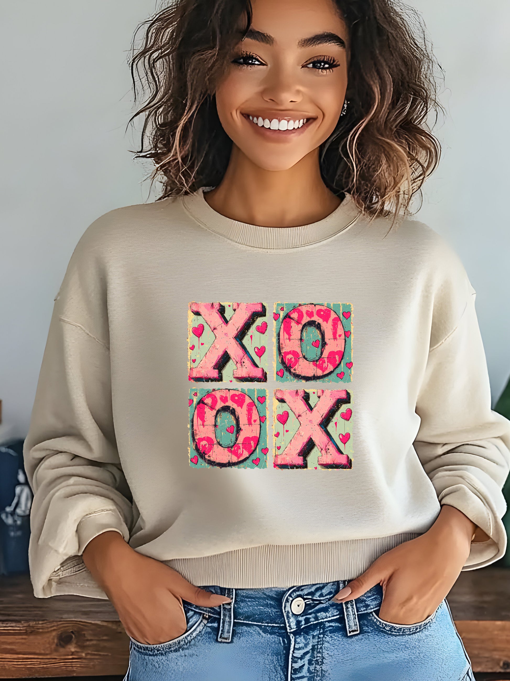 XOXO Hugs & Kisses Valentines Unisex Crewneck Sweatshirt - Sand